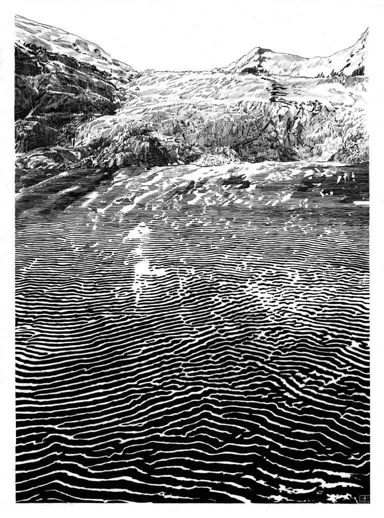 "Glacier" archival print, signed and numbered, on 8.5"x11" paper. Also available as 19" x 13" archival print.